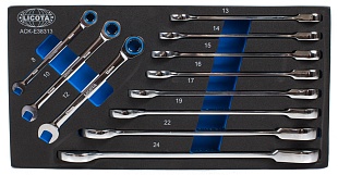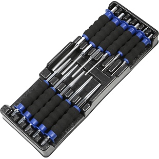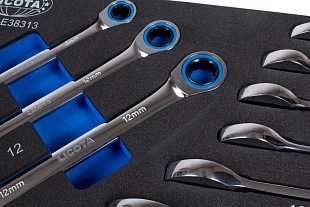 Набор ключей поставляется в ложементе из прочного пластика. Под каждую деталь предусмотрена отдельная выемка, поэтому инструменты всегда будут храниться в аккуратном порядке, а при необходимости вы сможете быстро найти именно тот, который вам нужен для работы.