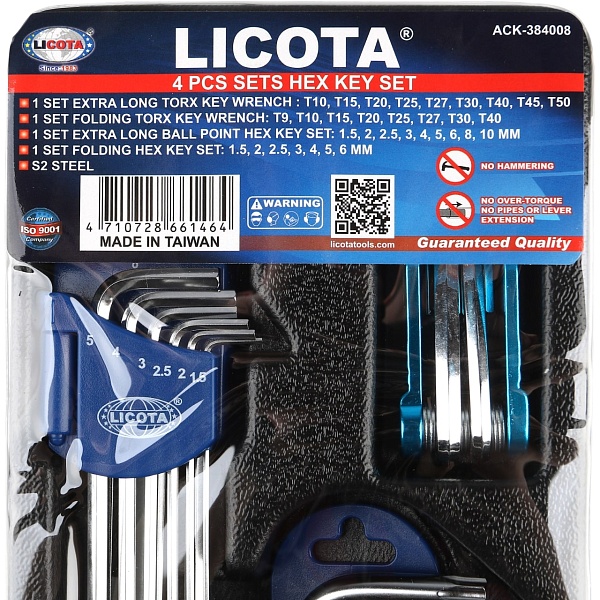 Набор шестигранных и Torx ключей 4 комплекта в ложементе, Licota, ACK-384008