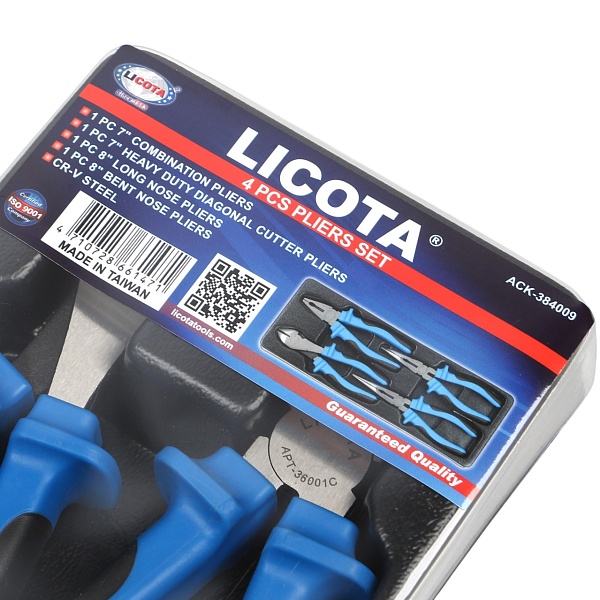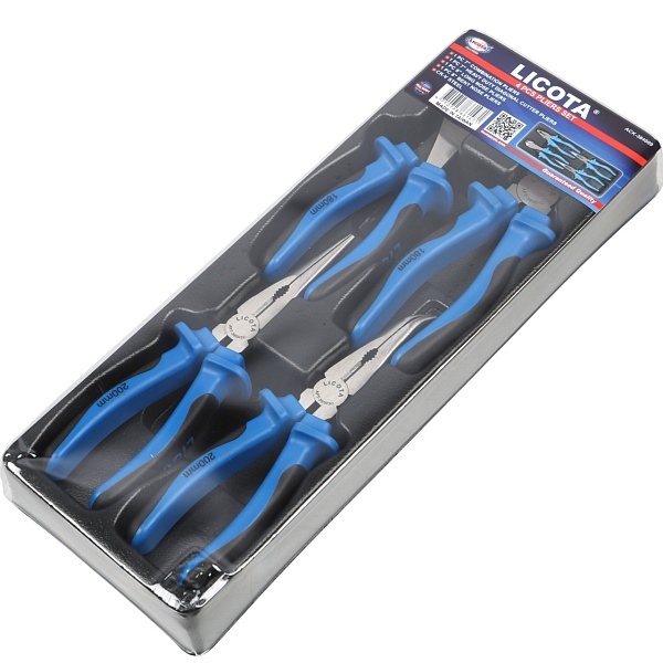 Набор шарнирно-губцевого инструмента Licota ACK-384009 из 4 предметов. Предназначается для комплектования инструментальной тележки автослесаря, механика, работника промышленного цеха.