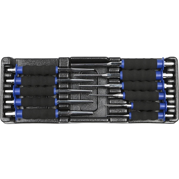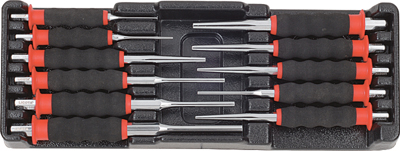 Набор выколоток Licota ACK-384021. Комплект из 11 предметов в пластиковом ложементе с углублениями под инструмент.
