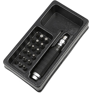 Пластиковый ложемент облегчает хранение инструмента в ящиках инструментальной тележки или верстака.