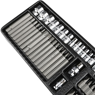Пластиковый ложемент позволяет хранить набор в ящиках инструментальной тележки или верстака.