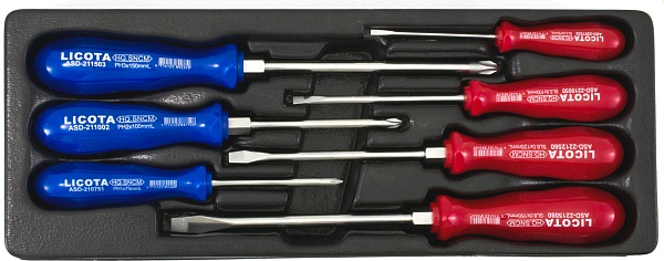 Набор отверток с пластиковой ручкой, 7 пр., в ложементе, Licota, ACK-384109