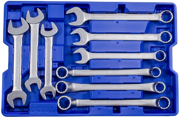 Набор ключей комбинированных, рожковых, накидных, 24 - 32 мм, в ложементе, 9 пр., Licota, ACK-B1004