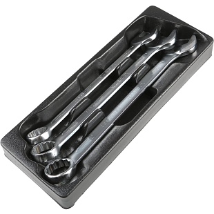 Ключи надежно зафиксированы и защищены от беспорядочного размещения. Набор в пластиковом ложементе удобно хранить в ящиках верстака или тележки.