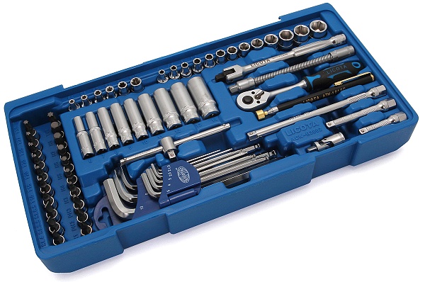 В набор входят четыре типа торцевых головок (см. раздел “Комплектация”), трещотка, вороток, кардан, удлинители и комплект экстрадлинных шестигранных ключей с шаром. Комплект применяется при сборке-разборке узлов автомобиля и другой техники.