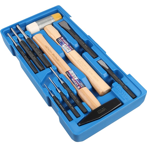 Набор ударно-режущих инструментов Licota ACK-B3006. Комплект вспомогательного инструмента для проведении слесарно-монтажных работ включает в себя молотки (со стальным и мягкими бойками), зубила и выколотки.