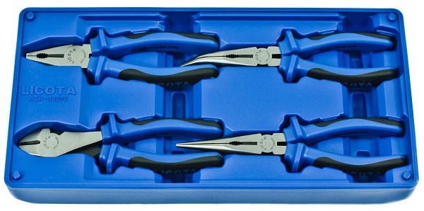 Набор шарнирно-губцевого инструмента Licota ACK-B3010 из 4 предметов. Предназначен для комплектования инструментальной тележки автослесаря, механика, работника промышленного цеха.
