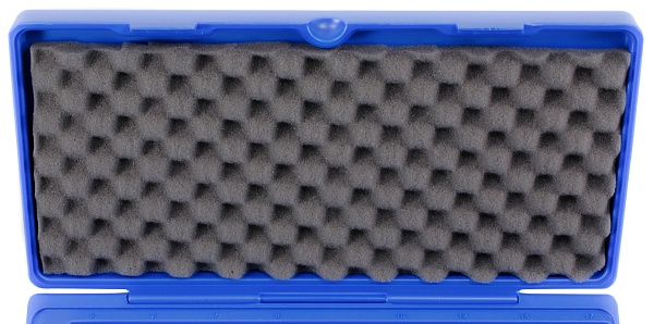 Материал крышки - прочный пластик, обеспечивающий долговечность изделия. Поролоновая проставка дает плотное прилегание хранимого и транспортируемого инструмента к крышке кейса.