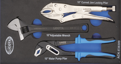 Набор ручные тиски, переставные клещи, разводной ключ, в ложементе EVA, Licota, ACK-E38309