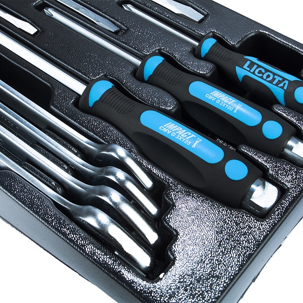 Набор цельнометаллических отверток и ключей комбинированных 24-32 мм в ложементе, 10 пр. (из набора AHB-533K01), Licota, AHB-533K01-5