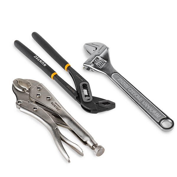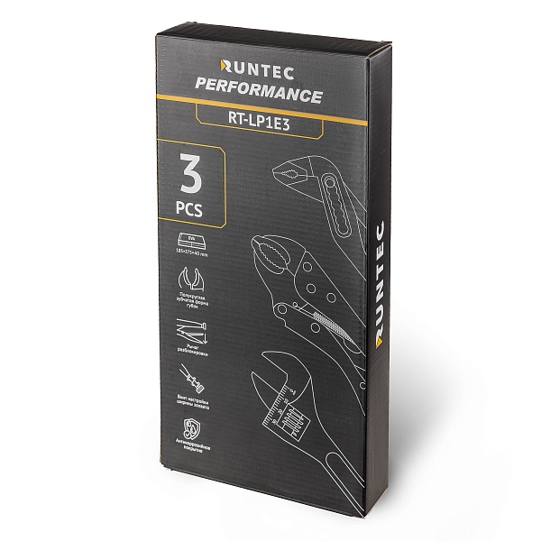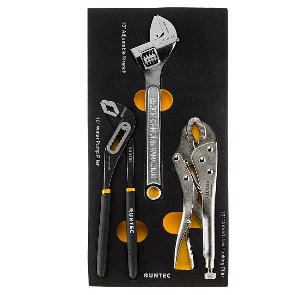 Набор ручных инструментов RUNTEC клещи зажимные, клещи переставные, ключ разводной в ложементе EVA, 3 предмета, RT-LP1E3