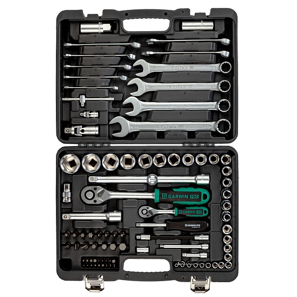 Универсальный набор из 89 предметов GARWIN 641045 – набор профессионального уровня. Подходит для решения различных задач в автосервисе, на производстве и в быту. Если нужен универсальный набор инструментов, с помощью которого нужно провести мелкий ремонт автомобиля, или произвести какие-либо монтажные работы, то набор 641045 – Ваш выбор. Комплект ключей от 8 до 22 мм, торцевые головки от 4 до 32 мм, аксессуары, биты - все эти инструменты хранятся в компактном надежном кейсе, который всегда под рукой.
