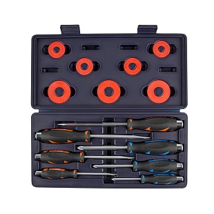 Инструменты изготовлены из хром-ванадиевого сплава и стали S2, которые отличается повышенной твердостью. Микрофинишная полировка обеспечивает надежную защиту от коррозии, а термическая закалка гарантирует высокую прочность.
