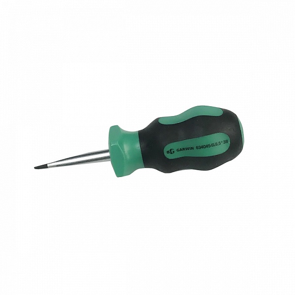 Отвертка профессиональная короткая Garwin 634045. Длина жала - 38 мм, рабочий профиль - SL (шлиц).