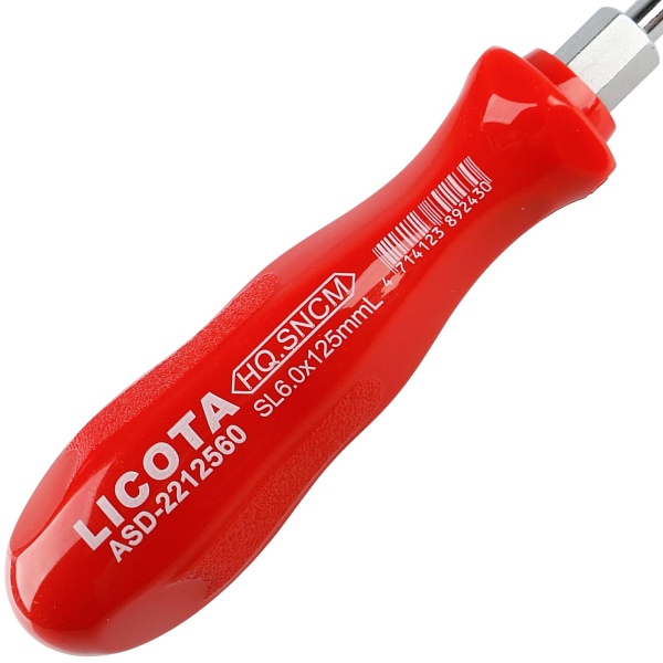 Отвертка с алмазным напылением усиленная Licota ASD-2212560. Длина жала - 125 мм, рабочий профиль - SL (шлиц).