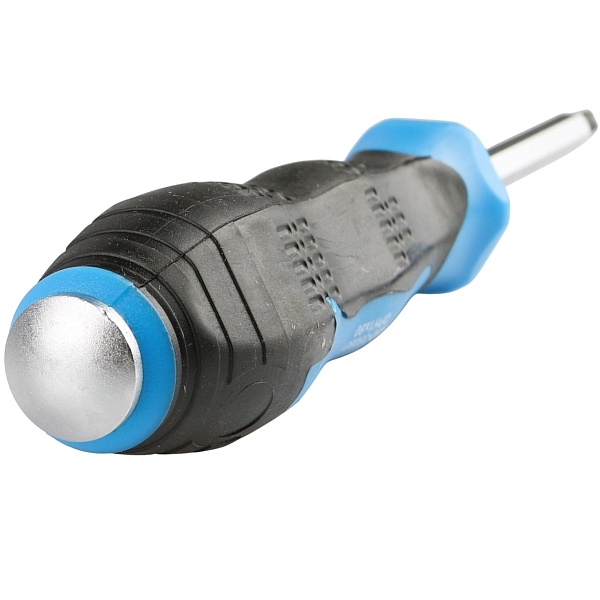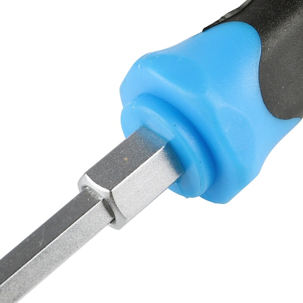 Стержень отвертки проходит через всю рукоятку и заканчивается ударным затыльником. При откручивании “закисшего” или “прикипевшего” крепежа это позволяет дополнительно прикладывать небольшие ударные нагрузки. Шестигранник между стержнем и рукояткой дает возможность использовать гаечный ключ для увеличения крутящего момента.