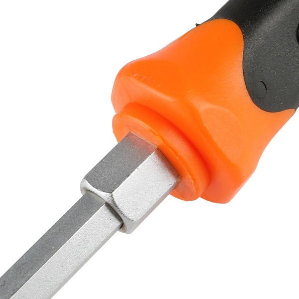 Усиленная конструкция с шестигранным профилем жала и приводом под ключ у его основания позволяет прикладывать дополнительное усилие при закручивании-откручивании крепежа.