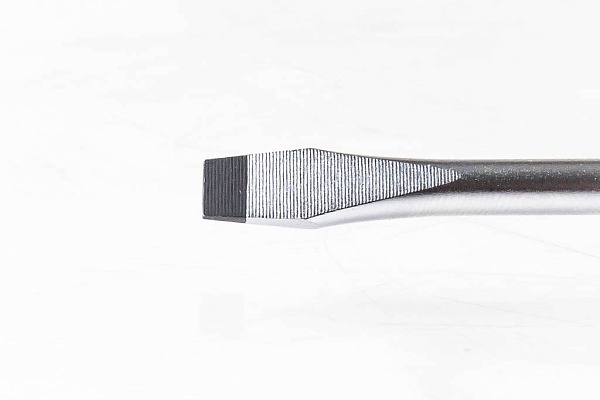 Жало отвертки изготовлено из прочной инструментальной стали S2, устойчивой к динамическим нагрузкам. Высокоточная фрезеровка шлицев обеспечивает надежное сцепление с профилем крепежа, сводя к минимуму вероятность повреждения.