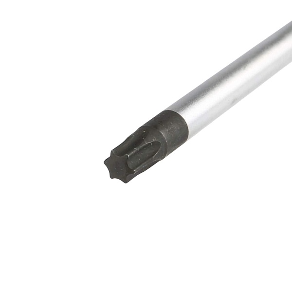 Жало отвертки изготовлено из прочной инструментальной стали S2, устойчивой к динамическим нагрузкам. Высокоточная фрезеровка шлицев обеспечивает надежное сцепление с профилем крепежа, сводя к минимуму вероятность повреждения. Рабочий профиль Torx позволяет усилить затяжку крепежа без “слизывания” головки.