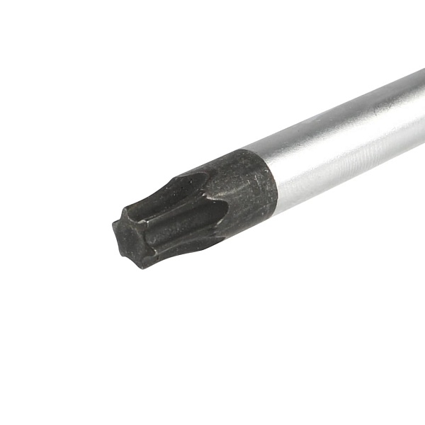 Жало отвертки изготовлено из прочной инструментальной стали S2, устойчивой к динамическим нагрузкам. Высокоточная фрезеровка шлицев обеспечивает надежное сцепление с профилем крепежа, сводя к минимуму вероятность повреждения. Рабочий профиль Torx позволяет усилить затяжку крепежа без “слизывания” головки.