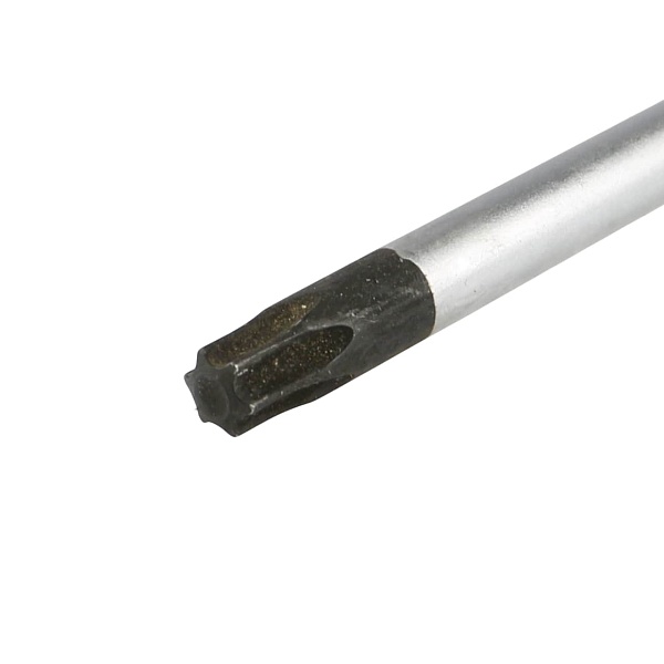 Жало отвертки изготовлено из прочной инструментальной стали S2, устойчивой к динамическим нагрузкам. Высокоточная фрезеровка шлицев обеспечивает надежное сцепление с профилем крепежа, сводя к минимуму вероятность повреждения. Рабочий профиль Torx позволяет усилить затяжку крепежа без “слизывания” головки.