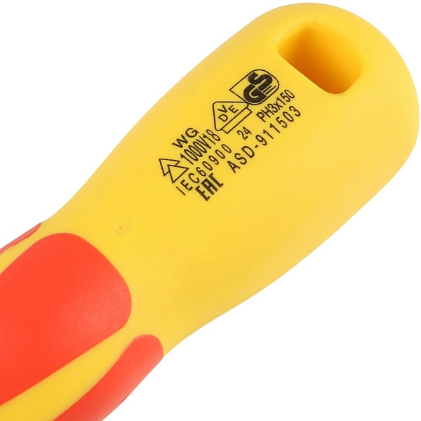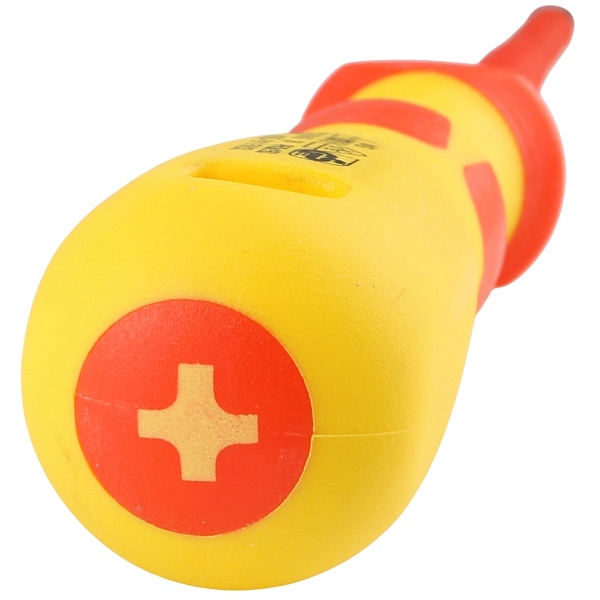 Шток отвертки защищен изолирующим покрытием. Допускается для производства слесарно-монтажных работ в электроустановках до 1000 В. Изоляция диэлектрического инструмента проверена согласно DIN 7438 в специальной среде (электролит) при напряжении в 10 000 В.