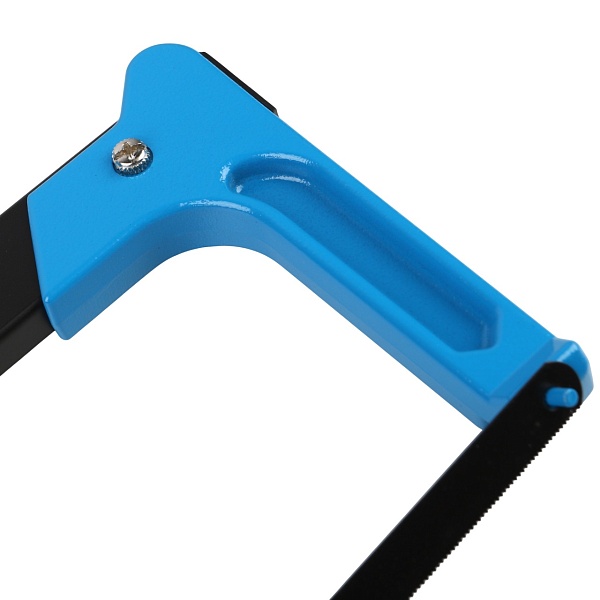 Рукоятка и передняя часть инструмента покрыты пластиком, что делает работу более комфортной в холодном помещении или на открытых площадках при низких температурах. Для удобства эксплуатации в передней части есть упор для ладони. Конструкция ножовки позволяет установить полотно прямо или под углом, что удобно при работе в ограниченном пространстве.