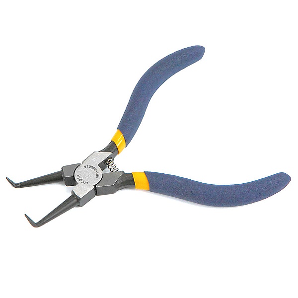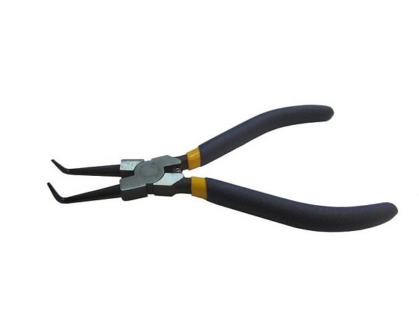 Съемник стопорных колец загнутый “японского типа”, Licota APT-38007A из хром-ванадиевой стали с ручками из эргономичного нескользящего полимера. Съемник работает на сжим. Длина инструмента - 125 мм.