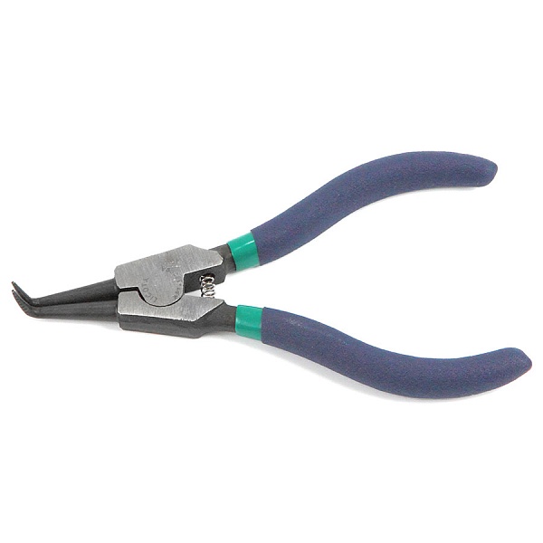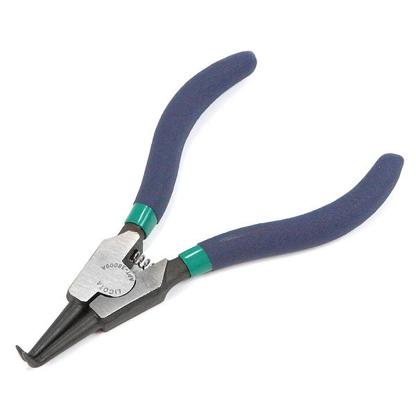 Съемник стопорных колец загнутый “японского типа”, Licota APT-38009A из хром-ванадиевой стали с ручками из эргономичного нескользящего полимера. Съемник работает на разжим. Длина инструмента - 125 мм.