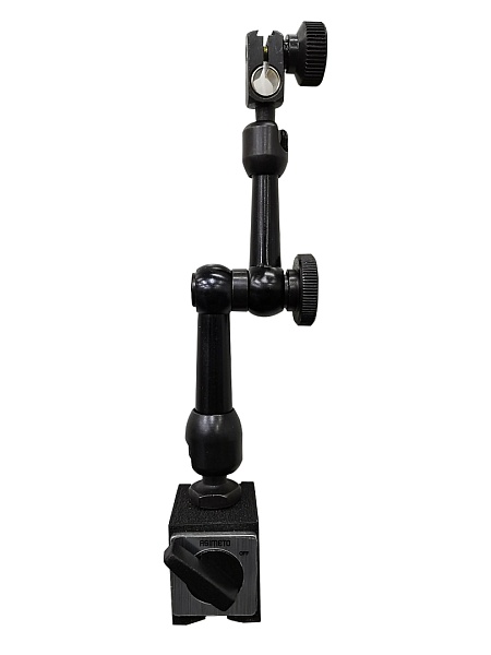 Механический магнитный измерительный штатив с механической фиксацией из одной точки. Все три сочленения зажимаются одной поворотной рукояткой. Зажимное усилие плавно и надежно регулируется. Шаровые шарниры обеспечивают быстрое и простое позиционирование.