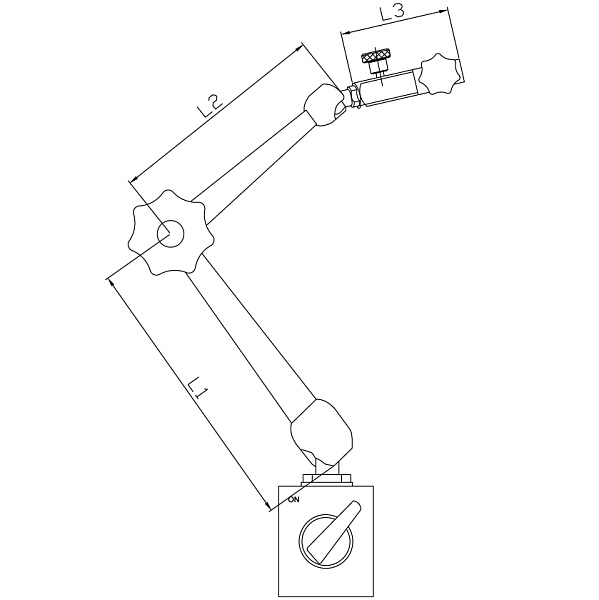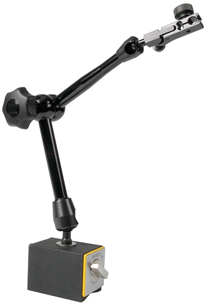 Механический магнитный измерительный штатив с механической фиксацией из одной точки. Все три сочленения зажимаются одной поворотной рукояткой. Зажимное усилие плавно и надежно регулируется. Шаровые шарниры обеспечивают быстрое и простое позиционирование.