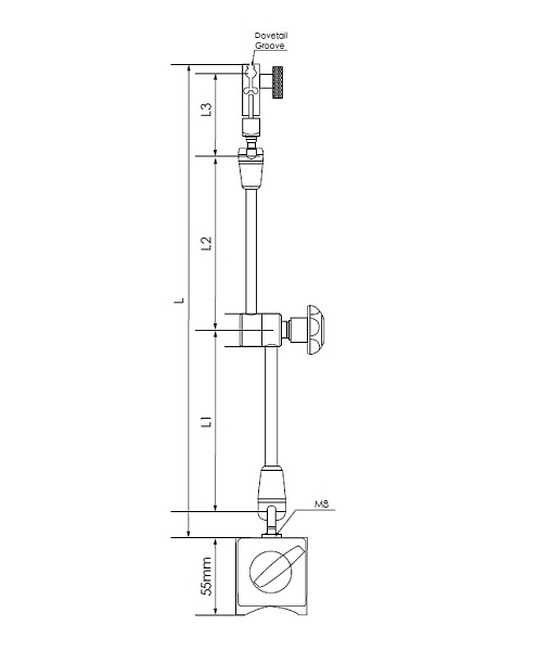Стойка спроектирована таким образом, что позволяет закреплять индикаторный инструмент с размерами стержня 8 мм и 3/8" дюйма.