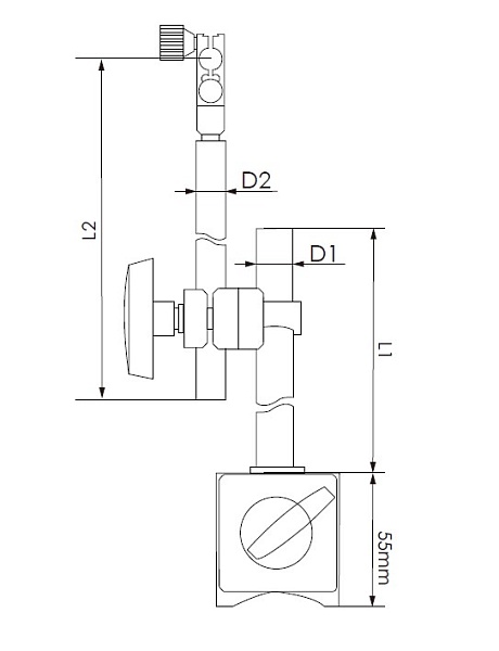 Поворотная ручка включает/выключает магнит. Закрепленный индикатор занимает необходимое положение без перемещения стойки.