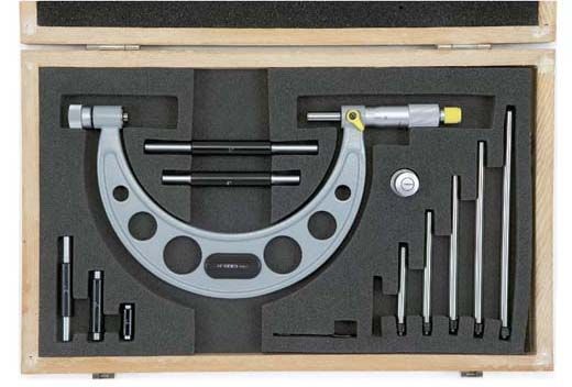 Регулировочные шкалы выполнены методом лазерной гравировки и четко видны даже при недостаточном освещении. Сменные опорные пятки (пятки) существенно расширяют диапазон измерений. Храповый механизм с трещоткой гарантирует постоянство измерительного усилия.
