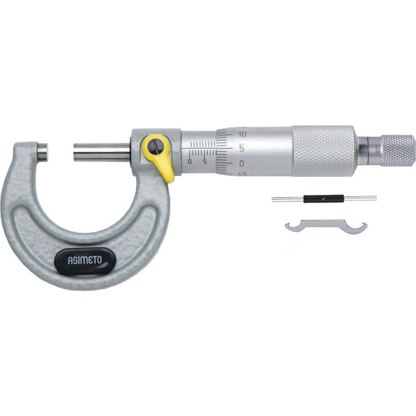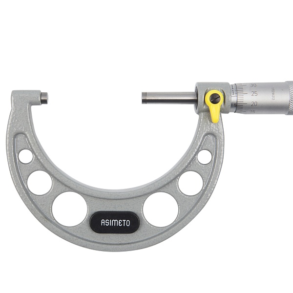 Микрометр гладкий механический для наружных измерений со скобой Asimeto 101-12-2 - универсальный прибор для измерений линейных размеров абсолютным или относительным контактным методом с низкой погрешностью в области малых размеров. Преобразовательным механизмом является микропара “винт - гайка”.
