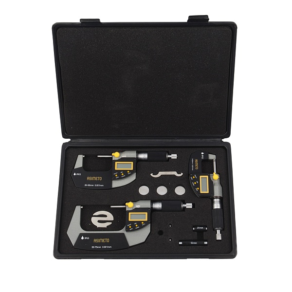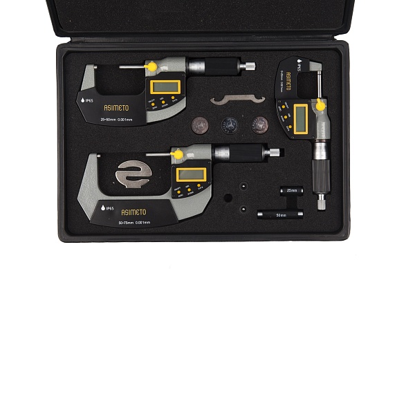 Набор цифровых микрометров 105 серии, 0,001 мм 0-75 мм, ASIMETO, 105-63-8