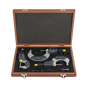 Набор микрометров гладких цифровых для наружных измерений Asimeto 105-63-8-П - комплект из 3 универсальных приборов для измерений линейных размеров абсолютным или относительным контактным методом с низкой погрешностью в области малых размеров. Преобразовательным механизмом является микропара “винт - гайка”.