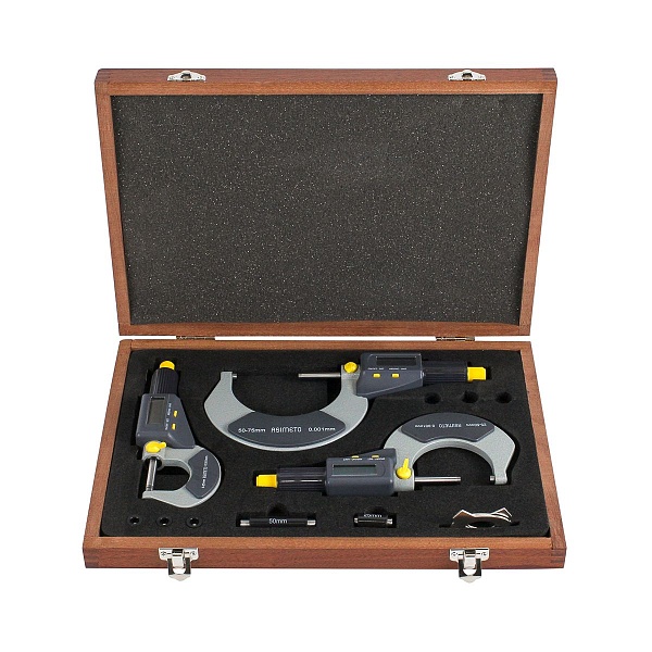 Набор цифровых микрометров 116 серии, 0,001 мм 0-75 мм, ASIMETO, 116-63-0