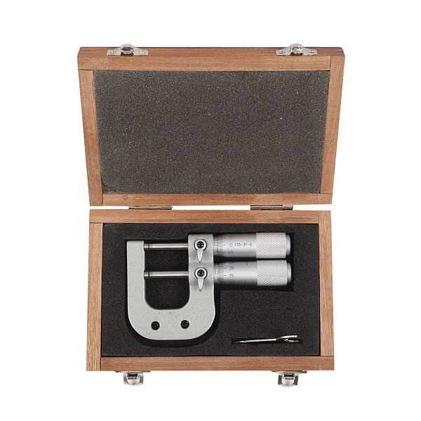Микрометр гладкий механический предельный для наружных измерений с двумя измерительными штифтами Asimeto 133-31-0 - универсальный прибор для измерений линейных размеров абсолютным или относительным контактным методом с низкой погрешностью в области малых размеров. Преобразовательным механизмом является микропара “винт - гайка”.