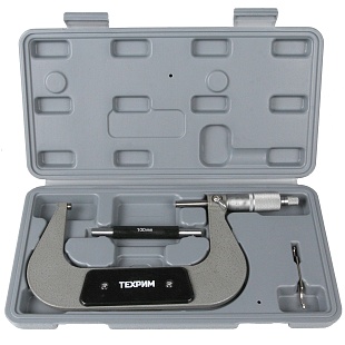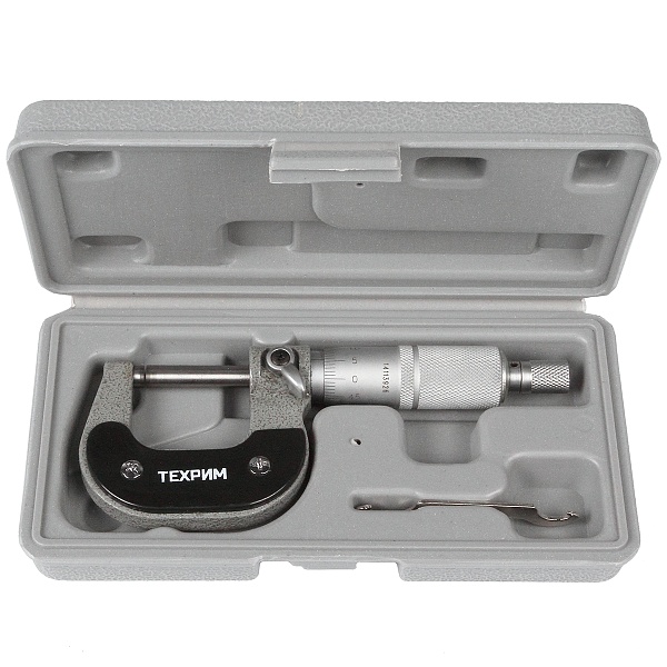 Микрометр гладкий механический для наружных измерений ТЕХРИМ T050005 - универсальный прибор для измерений линейных размеров абсолютным или относительным контактным методом с низкой погрешностью в области малых размеров. Преобразовательным механизмом является микропара “винт - гайка”.