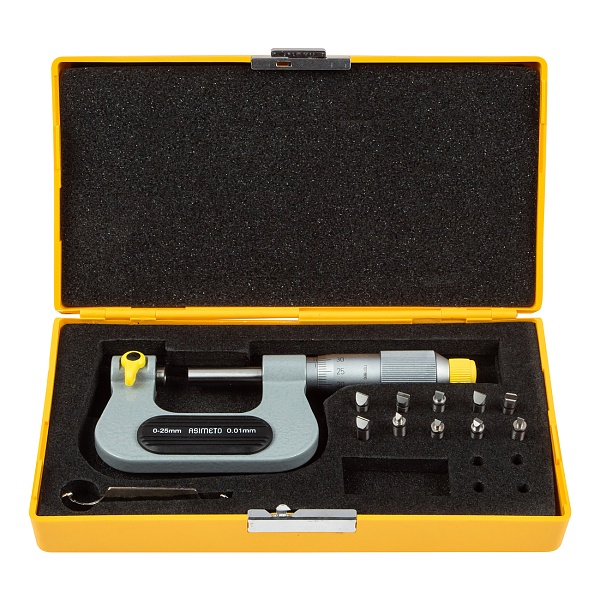 Микрометр для измерения резьбы со вставками 0,01 мм, 0-25 мм, ASIMETO, 133-01-0