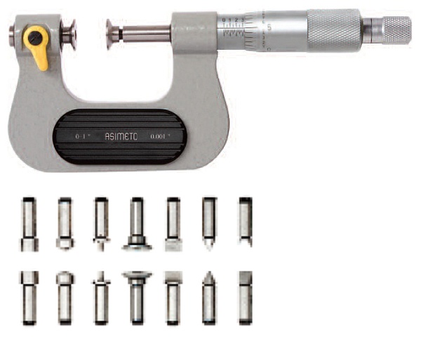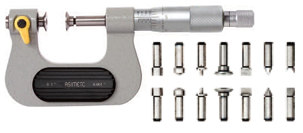 Микрометр универсальный со сменными наконечниками 0.01 мм, 0-25 мм, ASIMETO, 142-01-0