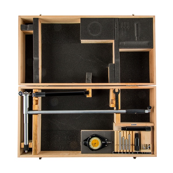 Комплект из 13 предметов в деревянном футляре позволяет производить замеры в труднодоступных местах. Диапазон измерений 400-600 мм.
