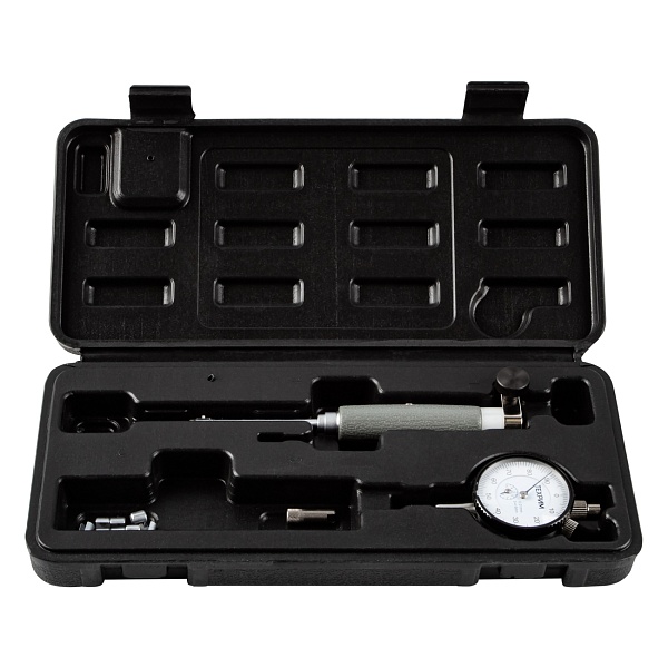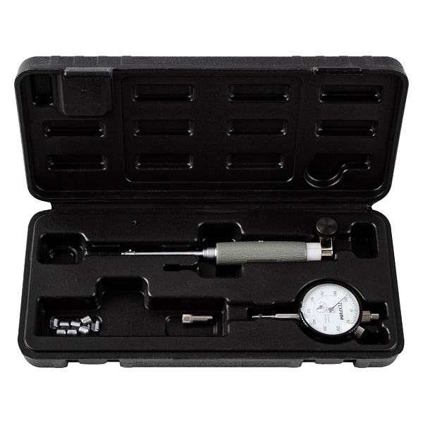 Нутромер индикаторный ТЕХРИМ T050028 предназначен для измерения внутренних размеров изделий способом двухточечного контакта с измеряемыми поверхностями относительным методом. Отсчетное устройство - индикатор часового типа.