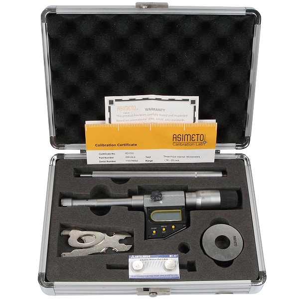 Микрометрический нутромер 3-х точечный цифровой IP65 0,001 мм 87–100 мм, ASIMETO, 208-33-0