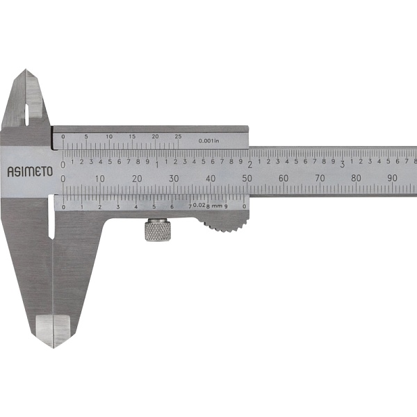 Штангенциркуль нониусный ASIMETO 302-26-2-П серии 302 из нержавеющей стали с губками для внутренних и наружных замеров и плоским глубиномером. Предназначен для измерения линейных размеров малогабаритных деталей.