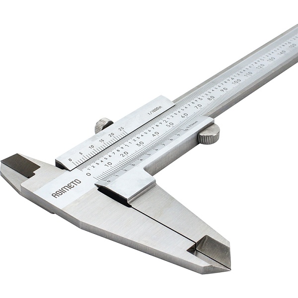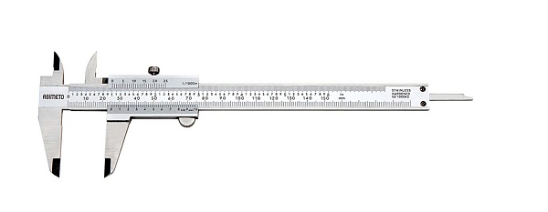 Штангенциркуль нониусный ASIMETO 341-04-4-П серии 341 из нержавеющей стали с губками для внутренних и наружных замеров и плоским глубиномером. Предназначен для измерения линейных размеров малогабаритных деталей.