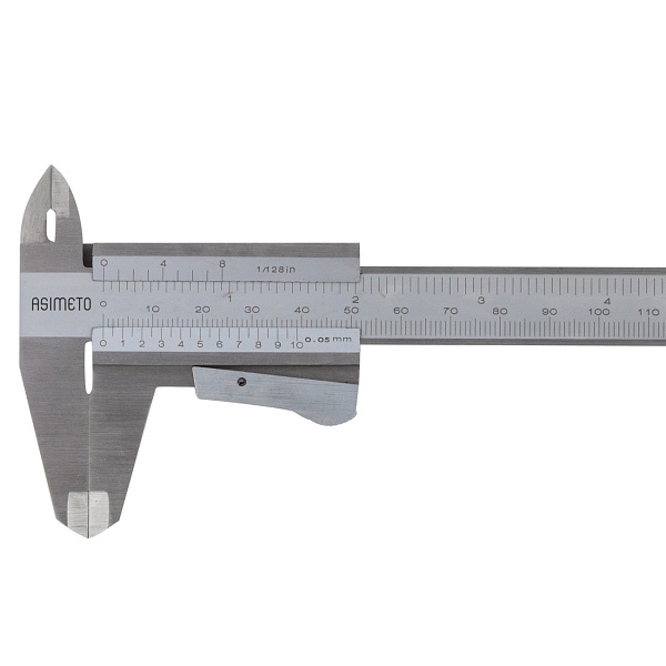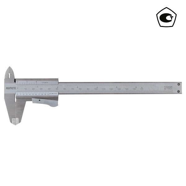 Штангенциркуль нониусный ASIMETO 351-06-0 серии 351 из нержавеющей стали с губками для внутренних и наружных замеров и плоским глубиномером. Предназначен для измерения линейных размеров малогабаритных деталей.
