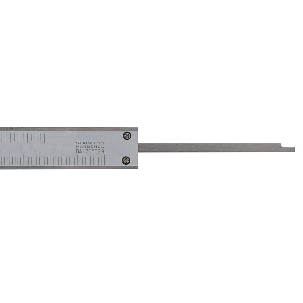 Матовое хромирование основной шкалы и нониуса обеспечивает высокий результат считывания. Плоский глубиномер позволяет измерить глубину отверстий диаметром от 2 мм.